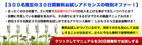 ・初回300名限定、30日間無料お試しができるアドセンス商材です!